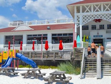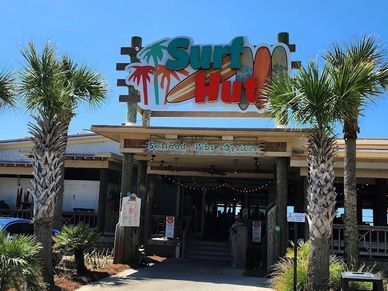 Surf on over to the Hut for fun in the sun, killer waterfront views, and fresh from the Gulf seafood as well as southern hospitality. The large menu and yard games on the beach backyard make this a great family hangout.